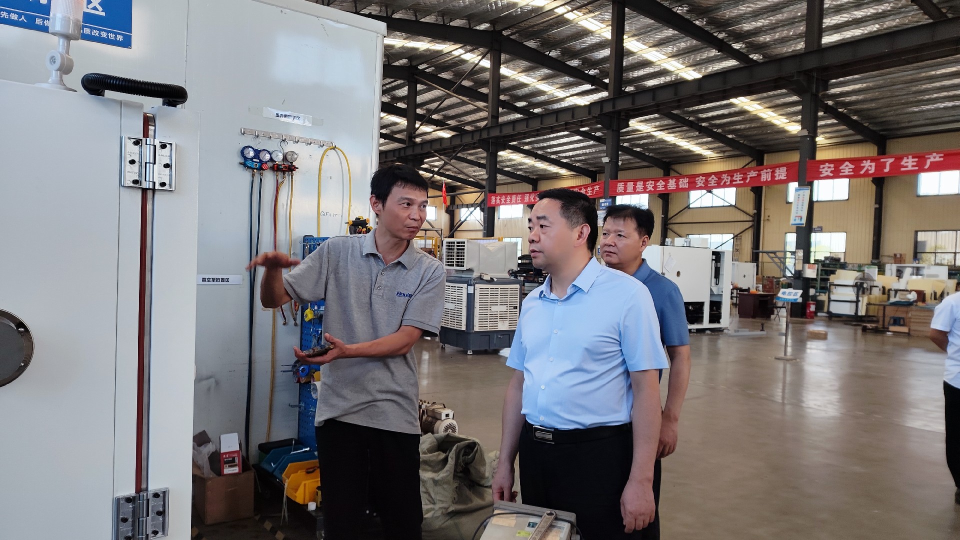 岳陽(yáng)縣領(lǐng)導(dǎo)調(diào)研湖南冬達(dá)儀器,助力高低溫環(huán)境試驗(yàn)箱工廠高質(zhì)量發(fā)展